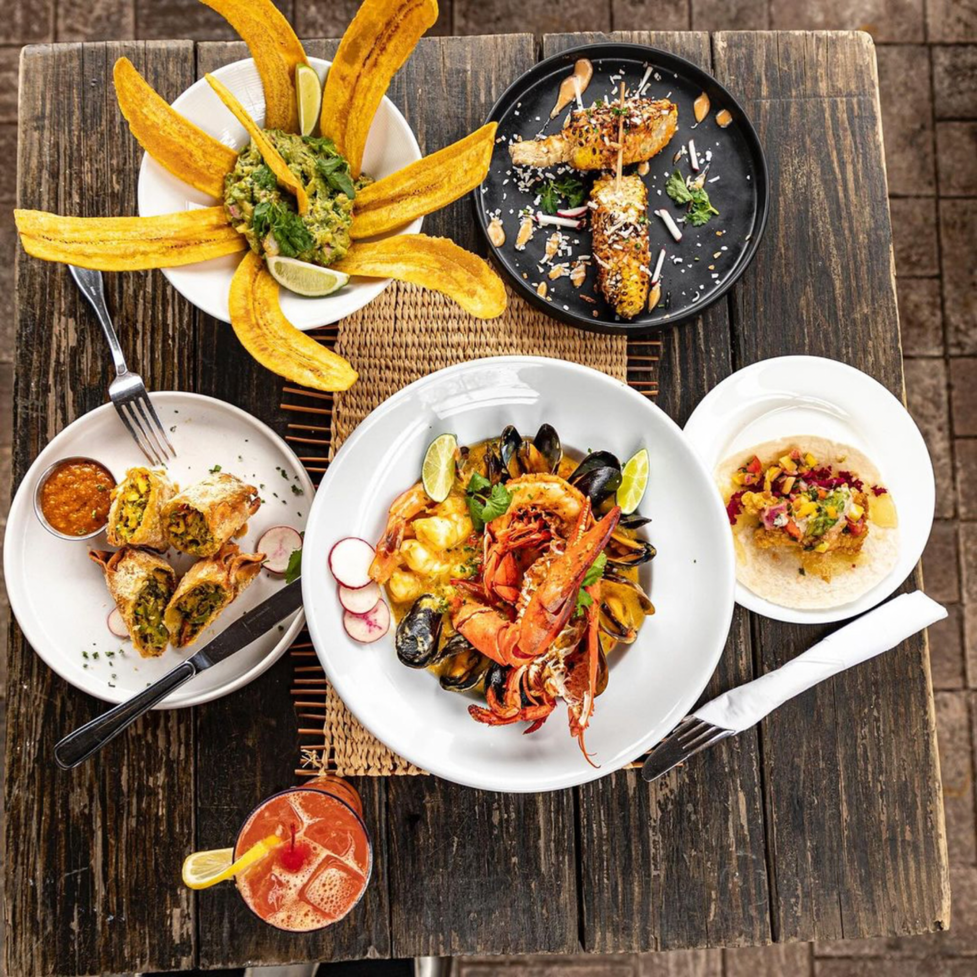 For the main course, you can not go wrong with the Brown Stew Red Snapper, Coconut Crusted Soursop Glazed Salmon, Curry Shrimp Plantain Gnocchi Rasta Pasta, or Escovitch Catfish. Feeling adventurous? Try the coconut curry oxtail, a unique twist on a Caribbean classic. Weekends offer a bottomless mimosa brunch featuring delights like Fried Catfish with Waffles.
