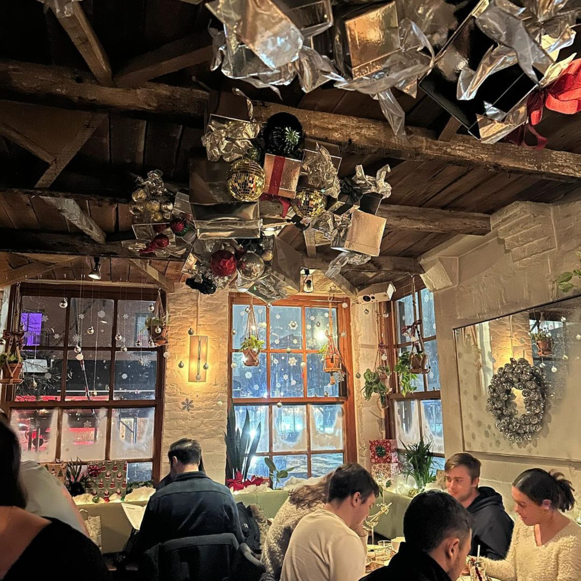 The space leans into whimsy. Oversized ornaments, garlands draped from the rafters, softly lit corners, and the signature Snowday blankets that regulars eagerly wait for each year. It strikes that sweet spot between nostalgic and stylish, giving guests a festive backdrop without feeling theatrical.
