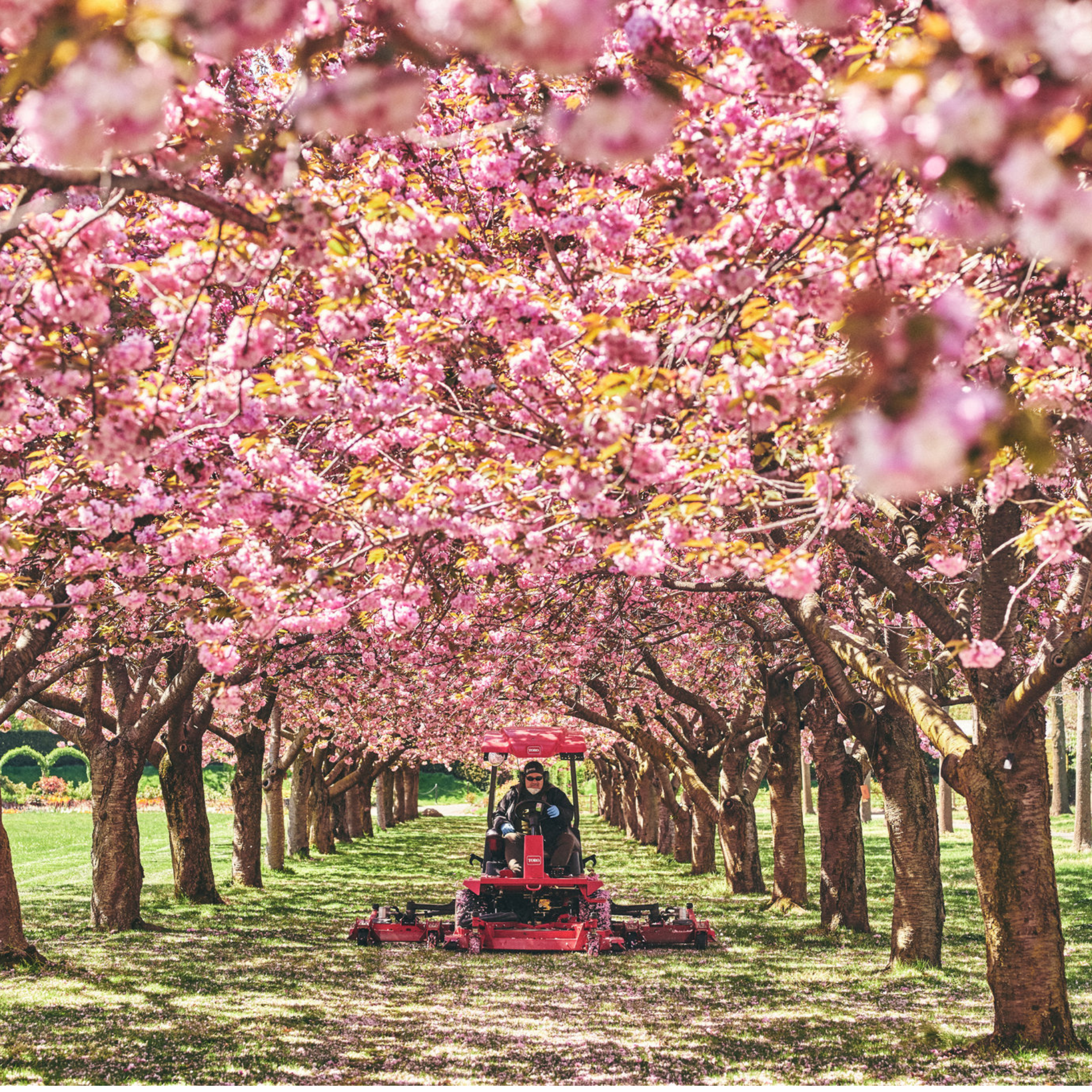 Be captivated by an impressive array of cherry trees, adorning the park with their delicate blooms, creating a stunning display of cherry blossoms that is simply unforgettable.