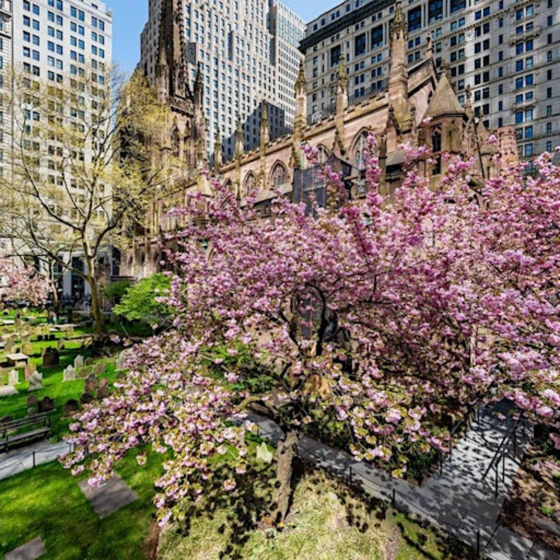 Experience the enchantment of Cherry Blossom in NYC with a visit to lower Manhattan’s St. Paul’s Chapel of Trinity Church. While not your typical park, this historic site offers a one-of-a-kind setting that harks back to New York’s storied past, long before the skyline was dominated by towering skyscrapers.